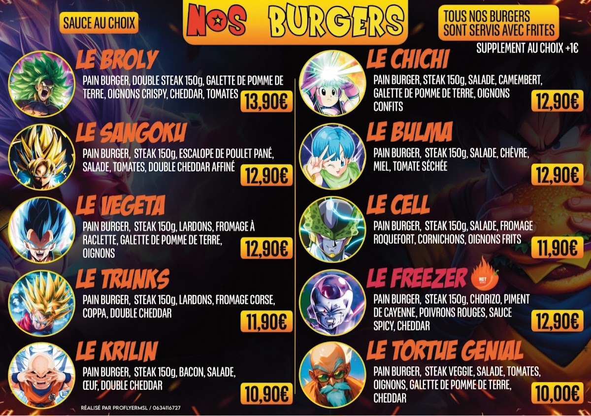 With dishes like the Broly, Végéta, and Krilin, DBZ Burger offers something for everyone, leaving customers eager to return for their next delicious experience. Don’t miss out on this culinary adventure!